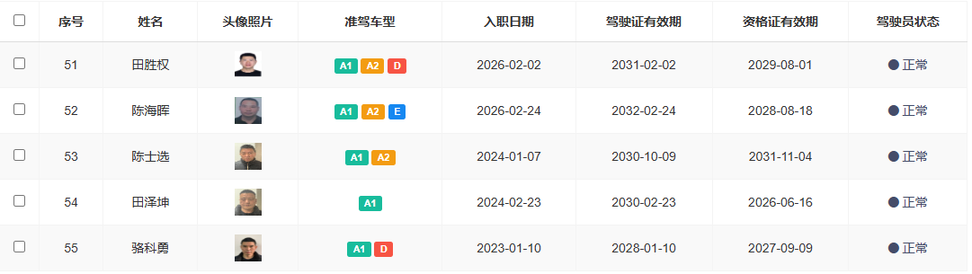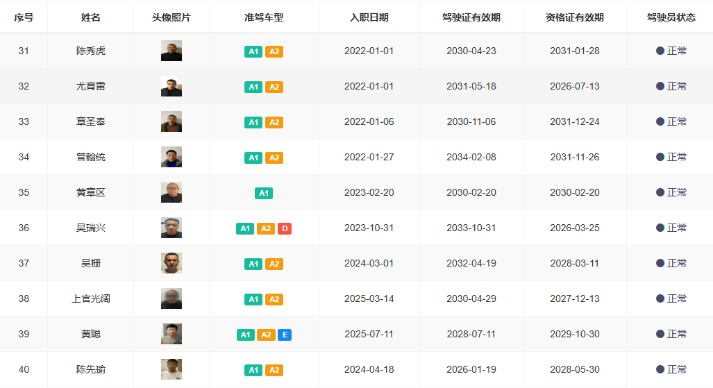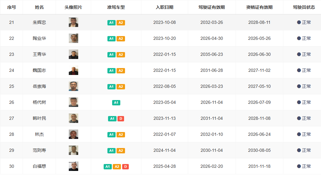 浙江省温州新干线快速客运有限公司--驾驶员清单